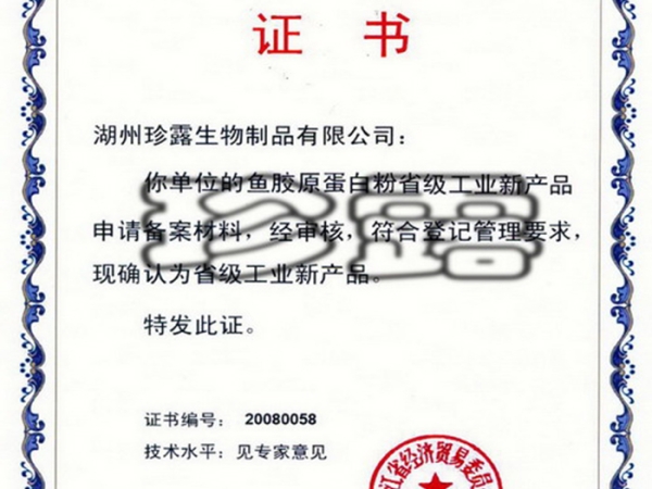 浙江省工業(yè)新產(chǎn)品(魚(yú)膠原蛋白粉)